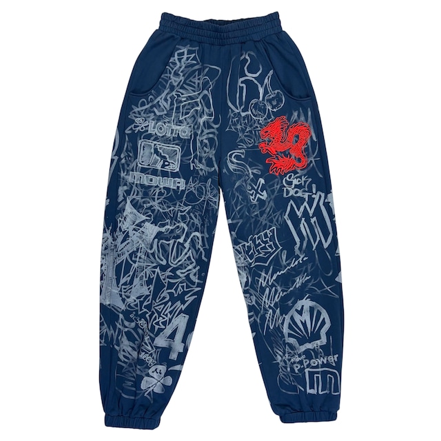25AW GRAFFITI TRACK PANTS 表記サイズ SIZE : M, L ウエスト WAIST : M 72~80cm, L 78~84cm 股上 RISE : M 45cm, L 45cm 股下 INSEAM : M 81cm, L 84cm 総丈 OUT SEAM : M 124cm, L 126cm 裾幅 HEM : M 18cm, L 18cm 色 COLOR : GREY/BLUE 素材 MATERIAL : 100% COTTON 生産国 COUNTRY OF ORIGIN : CHINA *Shipping worldwide. All sales are final. This item is non-exchangeable, non-returnable and non-refundable under any circumstances once your order is confirmed. Don’t hesitate to ask us.